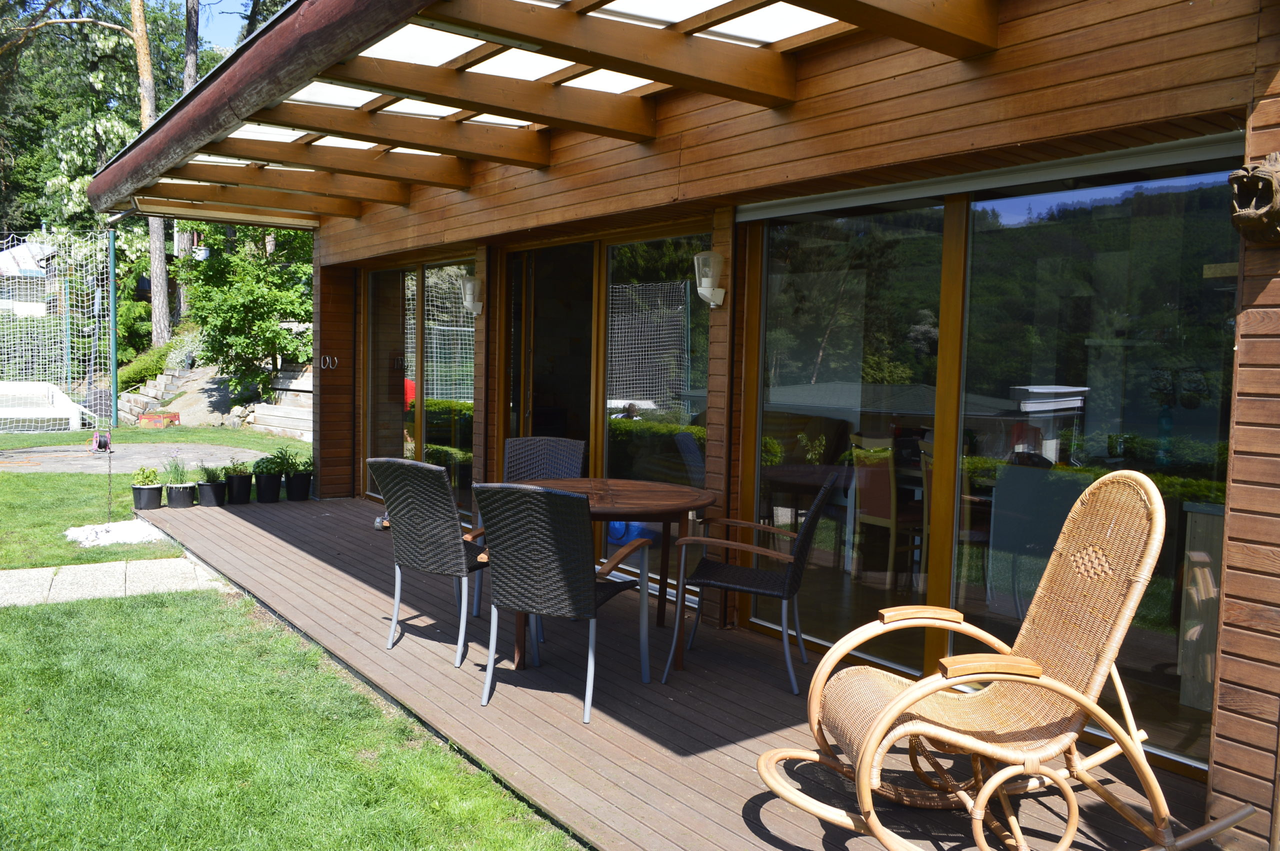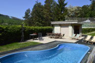 - Solárními panely vyhřívaný venkovní bazén s protiproudem, s možností zakrytí, lehátka kolem bazénu