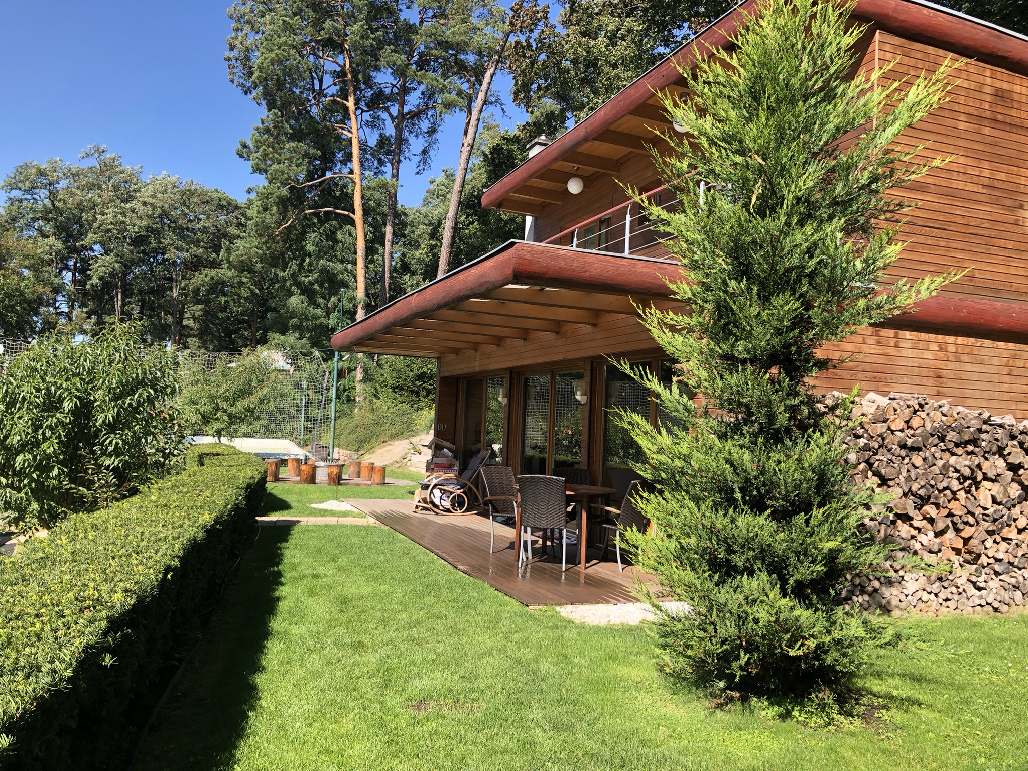 - Komfortně zařízená kuchyně (americká lednice s výrobníkem ledu a ledové tříště, kávovar MIELE, mikrovlnka s grilem, sklokeramická deska)